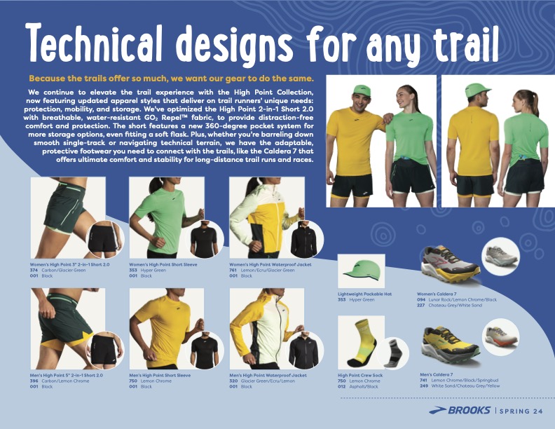 Examples of Tech Sheets and Trend Sheets created as marketing collateral to showcase features of new products. I determined which products to include, wrote copy, crafted the layout, and worked cross-functionally to produce the photos and graphics